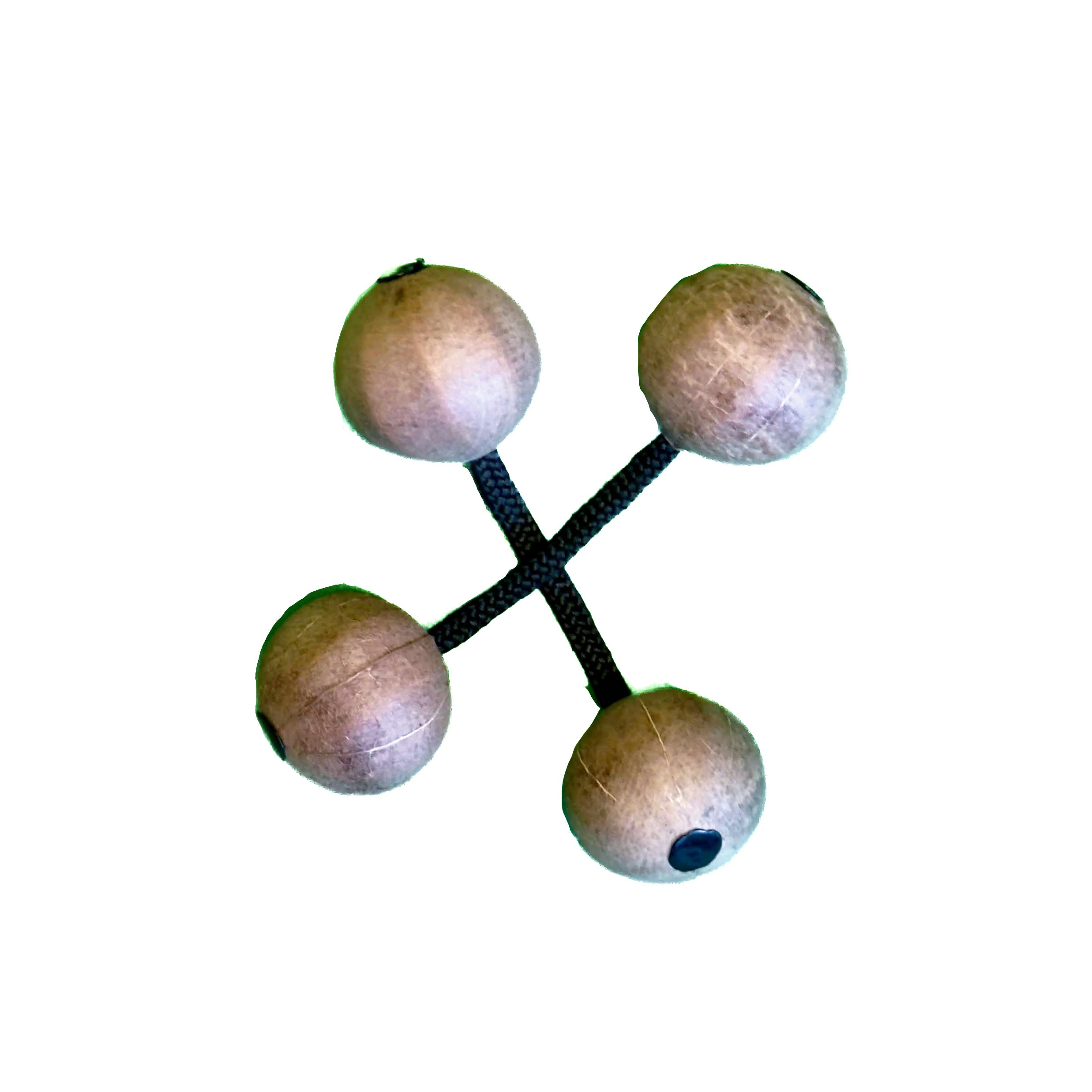 Dit kleine voorouderlijke instrument bestaat uit 2 gedroogde, ronde vruchten gevuld met zaden en verbonden door een touw; vruchten van de Oncoba Spinosa-boom die groeit in veel droge bossen en savannes van Oost-, Zuid- en West-Afrika.
